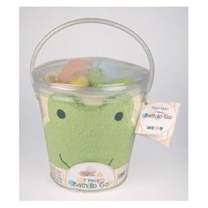 Product Description : Color: Ribbit RibbitIncludes 1 hooded towel, 2 wash cloths, 3 squirt toys and a bath bucket for storage and on-the-go convenience. The towel and wash cloths are made of 100% cotton terry. The hooded towel measures 33 " x 30 " and the wash cloths are 8 " x 8 ". Should be machine washed in cold water, gentle cycle. Wash separately, do not bleach. Tumble dry low, iron on lowest setting as needed.